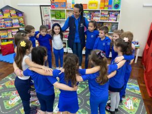 Com um currículo unidocente, os alunos de todos os níveis da Educação Infantil têm aulas de Música, Educação Física e Inglês com professores especializados.